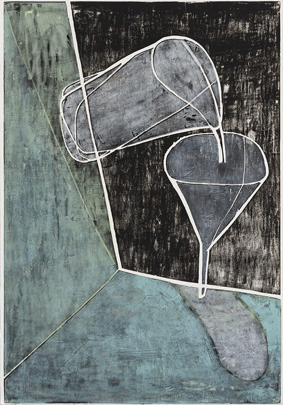 Kanne und Trichter I, 2008/2019, Holzschnitt/Unikat, 80 x 55 cm