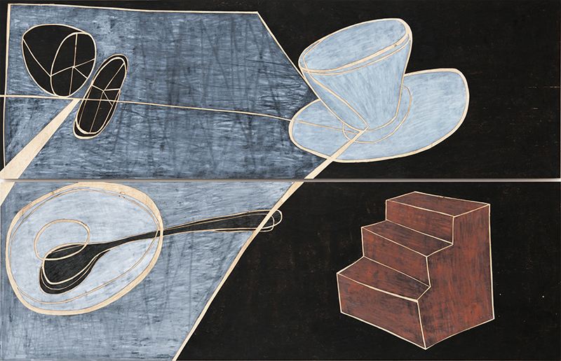 Treppe zum Frühstück I, 2010, Öl auf Holz, 2-teilig je 70 x 220 cm